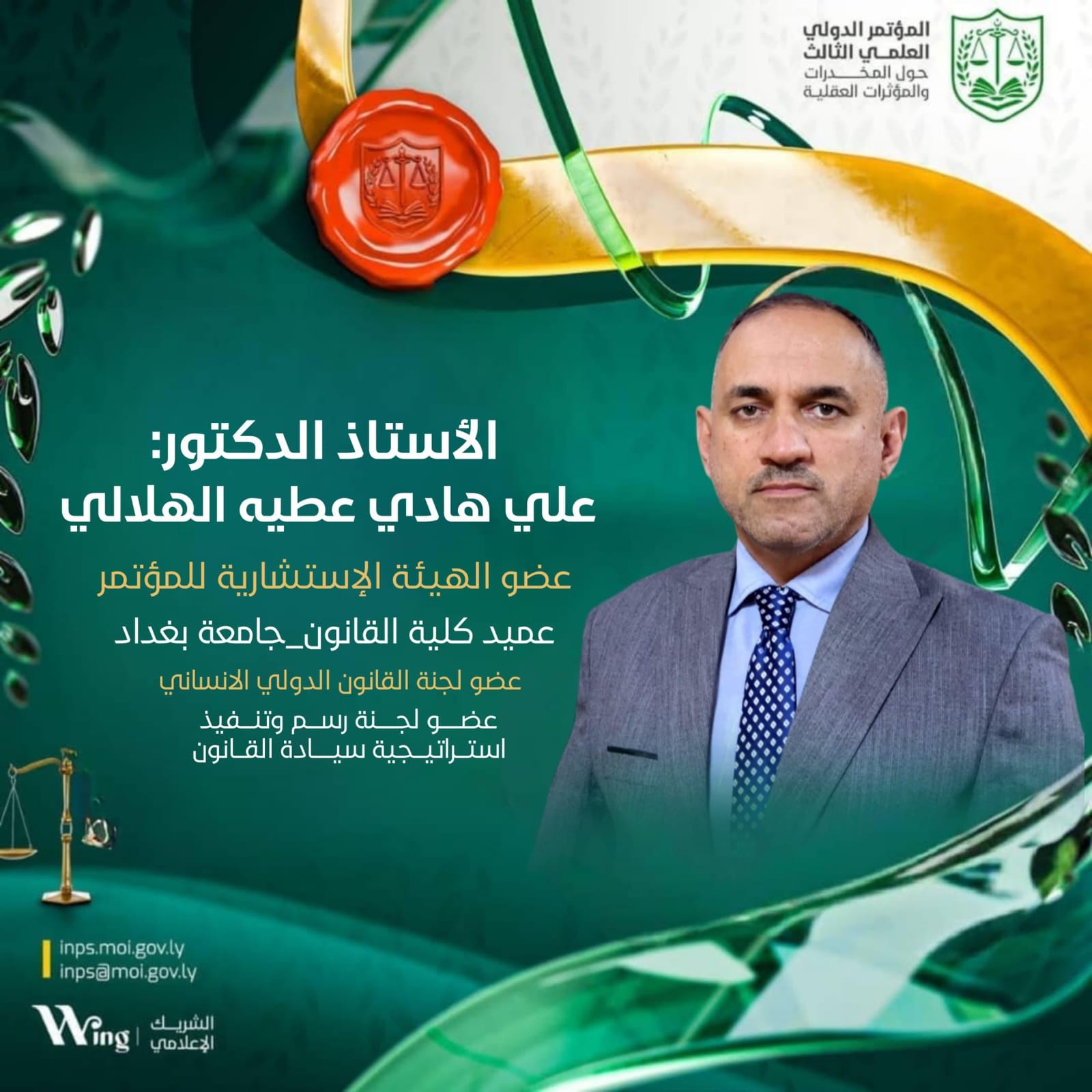 Professor Dr. Ali Hadi Atiyah Al-Hilali, der Dekan der Rechtswissenschaftlichen Fakultät der Universität Bagdad, wurde im Rahmen internationaler wissenschaftlicher Kooperation in das Beratungsgremium gewählt. Auch Assistenzprofessor Dr. Qaed Hadi Dahish, der den Strafrechtszweig der Fakultät leitet, wurde als Mitglied eines wissenschaftlichen Beratungsgremiums für die dritte internationale wissenschaftliche Konferenz über Drogen und psychoaktive Substanzen ausgewählt. Vom 25. bis 28. November 2025 wird diese Konferenz in Tripolis, der Hauptstadt Libyens, mit dem folgenden Motto stattfinden: